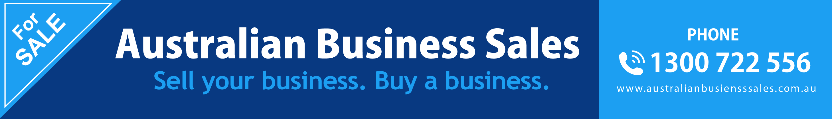 Look no further than AustralianBusinessSales.au, part of the Australian Business Sales Group), with over 70 Business for sale URL’s /Domains ,including 20 web sites that your business will have maximum exposure, providing your business with the ultimate solution for a successful business sale.
